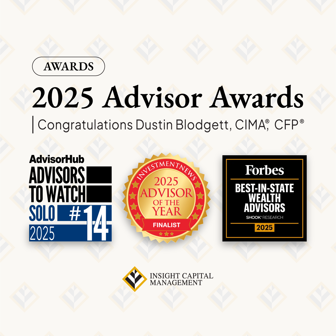 Insight Capital Management is proud to announce that firm founder and financial advisor Dustin Blodgett has been recognized with several of the most respected awards in the financial advisory industry for 2025.